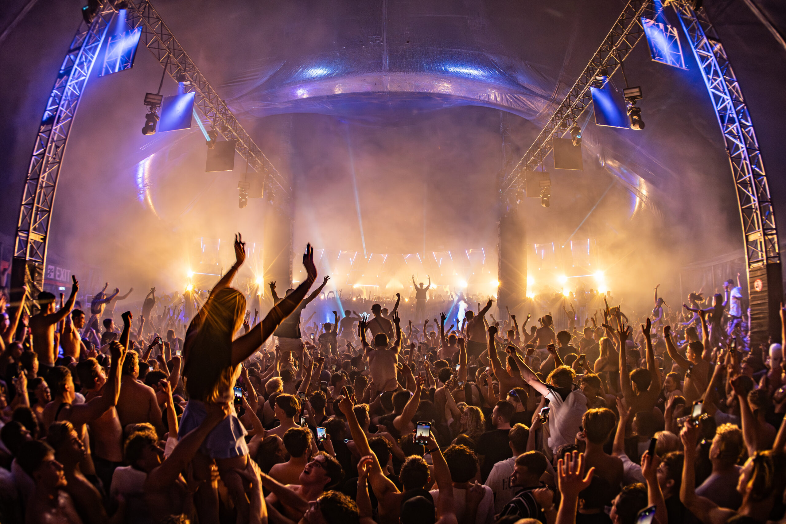From the moment you stepped inside, the industrial vibe of The Dome hit you. Lasers, fireworks, and massive LED screens lit up the dark space. The RAW stage had an intimate boiler-room feel, while the main stage was grand and overwhelming. There were plenty of food and drink options, and even the food court turned into a party. Signing sessions featured artists such as Gezellige Uptempo, while the Eleven Travel bus bounced to the beat like a party on wheels.