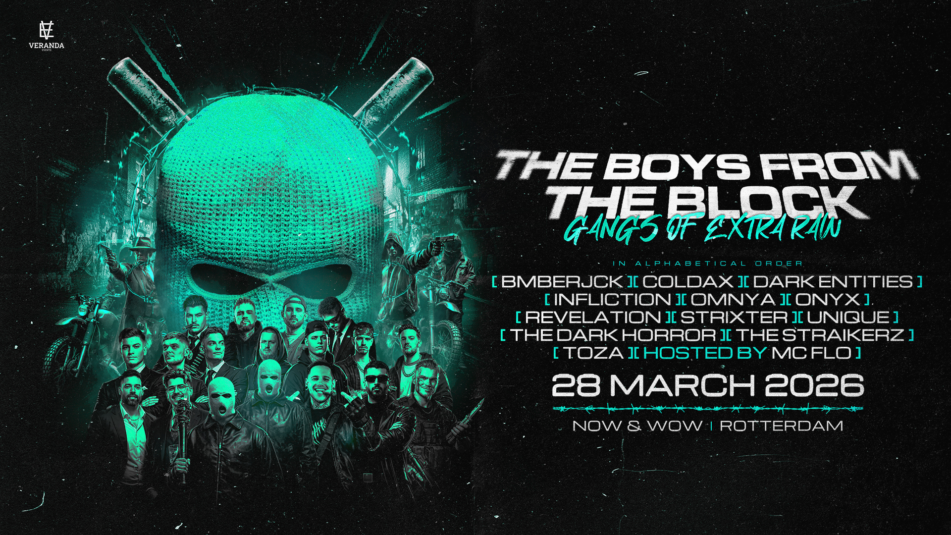 What usually remains separate comes together. On Saturday, 28 March 2026, ONYX organises The Boys From The Block: Gangs of Extra Raw at Now & Wow Rotterdam, an event in which various extra raw acts are deliberately placed within a single programme.