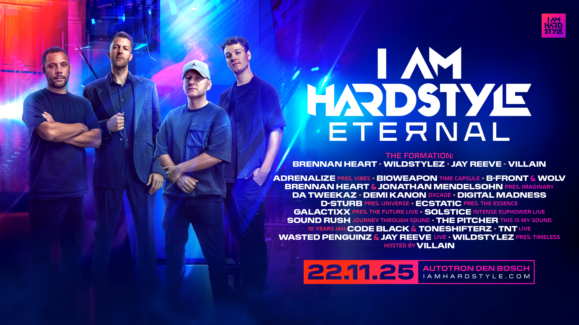 I AM HARDSTYLE – ETERNAL vindt plaats op zaterdag 22 november 2025 in Autotron Rosmalen. Wil jij deze tweede editie vol met exclusieve live-acts, primeurs en de introductie van THE FORMATION niet missen? De kaartverkoop is vandaag gestart, dus ga voor tickets en meer informatie naar de officiële website.