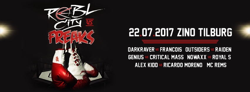 Tijdens de Tilburgse kermis gaat er een groots gevecht plaatsvinden!! Rebl City neemt het op tegen Freaks!!! De 2 gekste Freestyle concepten die ons land kennen, staan lijnrecht tegenover elkaar in de welbekende Zino!!! Met battles als: