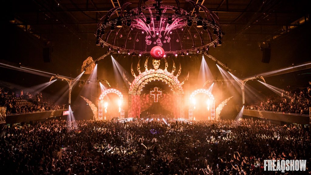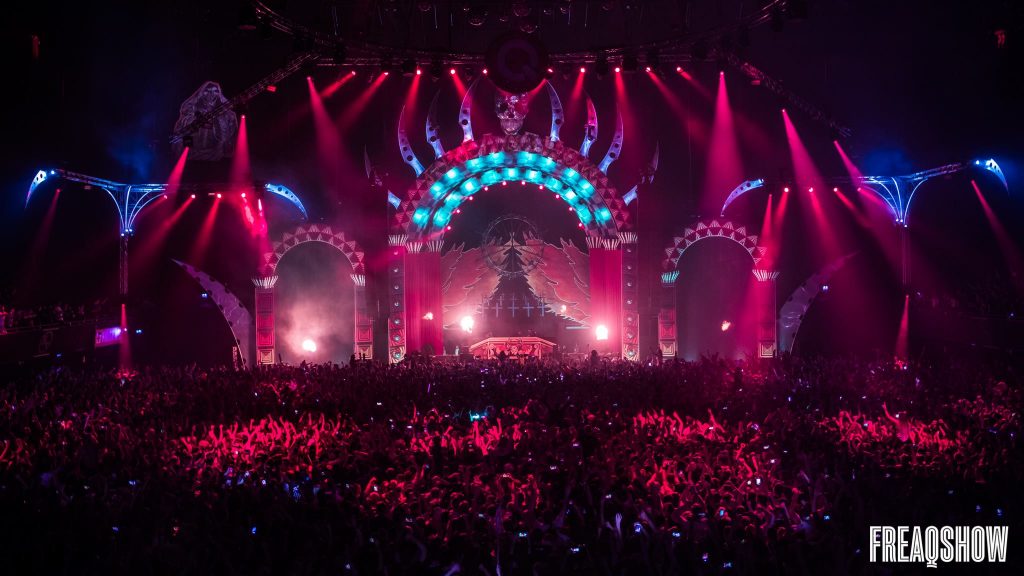 Let’s go back to the oldskool, want na Brennan Heart was het tijd voor Zatox! Zatox begon zijn show met het anthem dat hij voor deze editie van Freaqshow maakte, ‘Rest in Peace’. Tijdens het anthem werd de zaal gevuld met vuurwerk, en werkelijk iedereen zong mee. Daarna draaide Zatox onder andere de nummers ‘Rumble in the jungle’, ‘This is the Way We Crash the Party’ en ‘Kings of the Frontrow’. Ook de show was bij Zatox meer dan on point. Op het podium stonden danseressen met lichtgevende halve cirkels, waar ze een dansje mee deden. Moeilijk te omschrijven, maar heel indrukwekkend om naar te kijken. Hypnotiserend bijna.